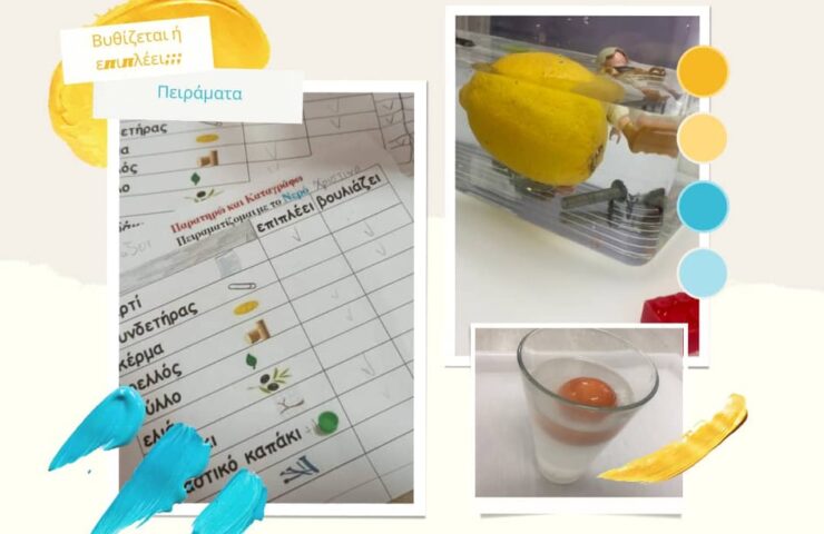 Πειραματιστήκαμε έντονα και ανακαλύψαμε πως στη βύθιση ή επίπλευση ενός σώματος δεν παίζει ρόλο το βάρος, αλλά το υλικό από το οποίο είναι φτιαγμένο ένα αντικείμενο. Μιλήσαμε για την πυκνότητα, ένα φυσικό μέγεθος που είναι χαρακτηριστικό για κάθε υλικό.