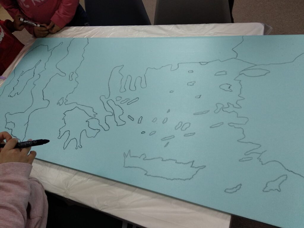 Οι περιπέτειες του Οδυσσέα για το ταξίδι του προς την Ιθάκη αποδόθηκαν σε έναν χειροποίητο χάρτη!!! Μπράβο στα παιδιά για την υπομονή που έδειξαν… Άξιζε το αποτέλεσμα!!