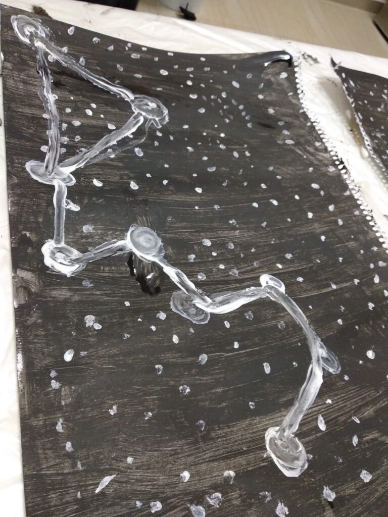Έτσι, με τη βοήθεια ενός χάρτη του ουρανού τα παιδιά προσπάθησαν να ζωγραφίσουν τον αστερισμό που δεσπόζει στον ουρανό και γίνεται ορατός την άνοιξη, ιδίως τον Μάρτιο και τον Απρίλιο!