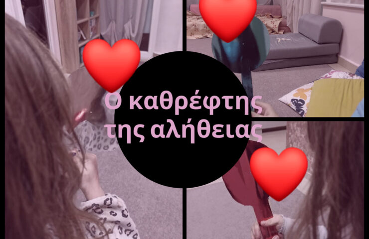 Ο καθρέφτης της αλήθειας! Ορμώμενοι από τη θέα Ήρα που χαρακτηρίζεται ως ζηλιάρα, στη δραστηριότητα της συναισθηματικής αγωγής αναφερθήκαμε στη ζήλια. Το συναίσθημα της ζήλιας είναι ένα φυσιολογικό συναίσθημα, όπως όλα τα συναισθήματα! Μετά τη ζήλια πολλές φορές έρχεται ο θυμός. Δεν μπορούμε πάντα να έχουμε αυτό που θέλουμε! Ένα συναίσθημα που στα παιδιά πολλές φορές είναι πολύ έντονο, οδηγώντας τα στο θυμό και σε δυσάρεστα αποτελέσματα. Ξεκινώντας λοιπόν, μιλήσαμε για το πώς βιώνουμε τη ζήλια και συζητήσαμε περιστατικά που έχουμε ζηλέψει. Κατασκευάσαμε έναν μαγικό καθρέφτη, τον καθρέφτη της αλήθειας. Σε αυτόν το κάθε παιδί ρωτούσε να του πει σε τι είναι καλύτερο και σε τι είναι ικανό! Ο καθρέφτης «ψιθυρίζοντας» στο αυτί κάθε παιδιού, μάς αποκάλυπτε τις ικανότητές του. Τέλος, καταλήξαμε πως όλοι είμαστε ικανοί σε κάτι, κάνουμε κάτι πολύ καλά και ίσως αυτό πρέπει να αναλογιζόμαστε, όταν το συναίσθημα της ζήλιας μάς κυριεύει!