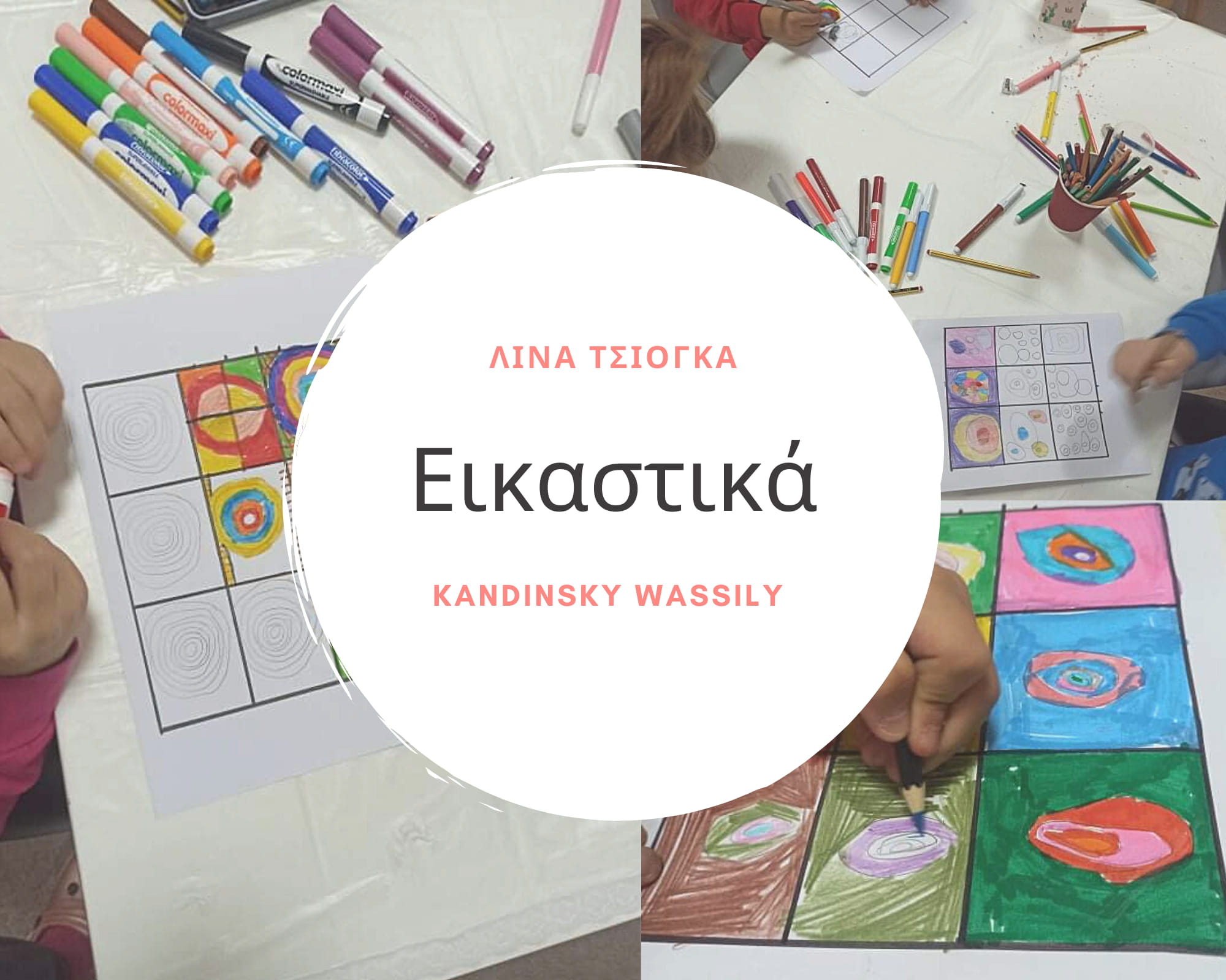 Μέσα από εικόνες γνωρίσαμε τον ζωγράφο Wassily Kandinsky και σταθήκαμε στο έργο του “Σπουδή χρωμάτων”. Με αφορμή αυτό το έργο μιλήσαμε για τα σχήματα, τα χρώματα και τα συναισθήματα που εκφράζουμε μέσα από αυτά. Στη συνέχεια, χωρίσαμε το χαρτί μας